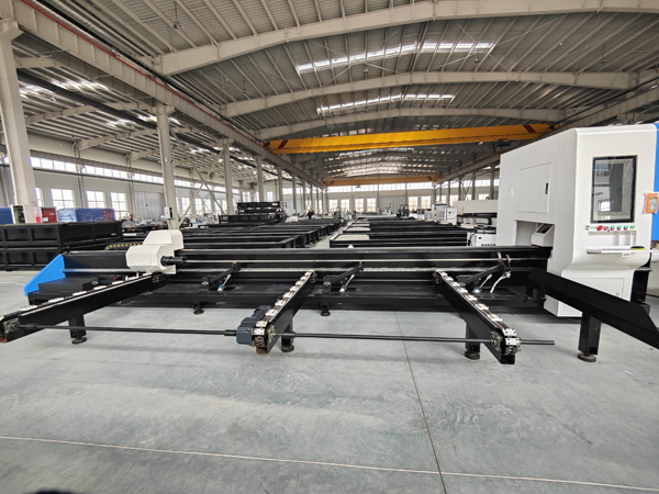| 自動上下料 | 高度適配。側掛式料庫的管材水平排列,非常便于機械手或伺服系統進行自動化、連續化的抓取和上料,是實現“黑燈工廠”的理想結構。 | 相對復雜。自動化方案通常需要額外的提升或轉移機構,將管材從料架搬運到支撐滾輪上,系統更復雜。 |