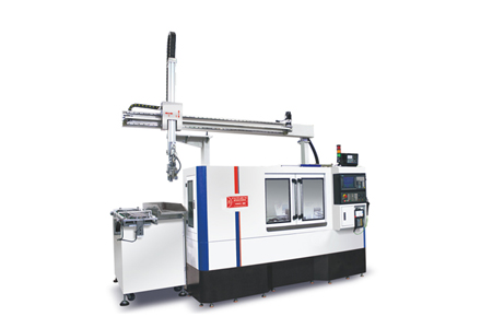 ● 90度回轉機械手,將繁瑣的上下料、多余動作減到最少,并全程監控工件,防止產品撞機,確保操作者的安全。