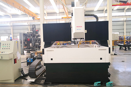 1. 床身兩側分別裝有重載直線滾柱導軌副。龍門兩側的縱向運動由交流伺服電機和大螺距精密滾珠絲桿副同步驅動。