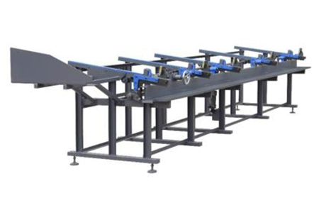 (12) 翻轉架:主要由機架、連桿機構、移料機構等組成。臺面用于放置待切原材料,適用于大噸位棒材的長期存放,可放置(φ100)與長度4-7m(超長可定做)桿料。其作用是通過油缸帶動連桿機構的運動,將拆包后的成捆工件一一輸送到移位機構的位置。移位機構通過移位油缸的作用將棒料傳送到送料輥道,再通過送料輥道輸送到主機鉗口進行鋸切,大大減輕了工人的勞動強度.?同時,減少了鋸切的輔助時間,提高了設備??的使用壽命。設備配有光電對射式檢測開關,具有自動檢測物料前沿位置的功能。為了解決前端對原材料的整齊度要求的缺陷。放料前位誤差在200mm以內可正常生產。