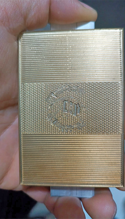 客戶工件尺寸:5inch *5inch,3D加工的厚度在0.3mm, 主要材質為青銅,材料的整個邊緣都需要模切。客戶提供了需要加工的工件照片,如圖所示: