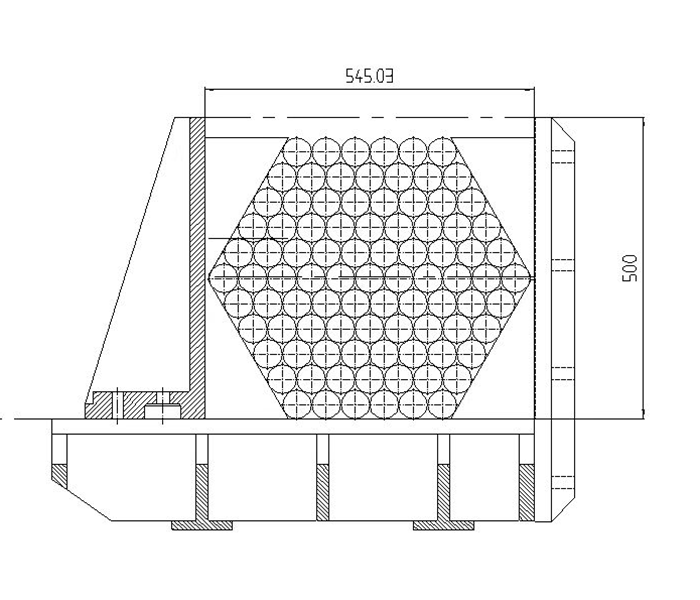 根據客戶一次要切割91根棒料的要求,我們的工程師設計了一個六邊形夾具,圖紙如下: