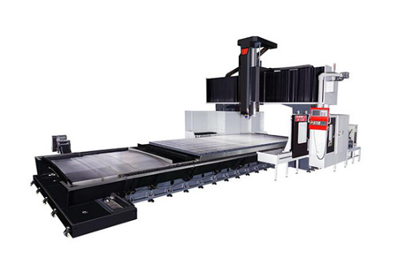 本機床系吸收國外技術設計的龍門框架結構的數控定梁龍門加工中心,立柱固定在床身側面,橫梁固定在兩個立柱上,在橫梁上裝有滑枕式鏜銑頭(主軸),組成了龍門框架式對稱形結構,具有較高的熱對稱性,整機剛性高,穩定性好,具有較高的動靜特性,機床定位精度高。機床的三個直線運動坐標軸分別是: