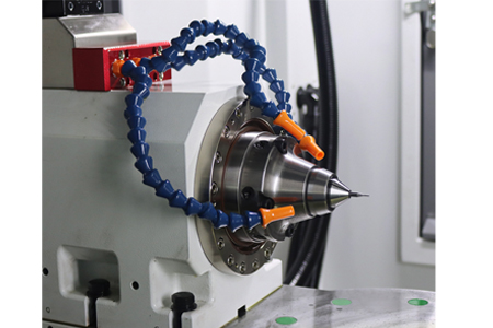 ???工件主軸采用dd直驅,配置有W20刀柄及筒夾,工件自動夾緊。