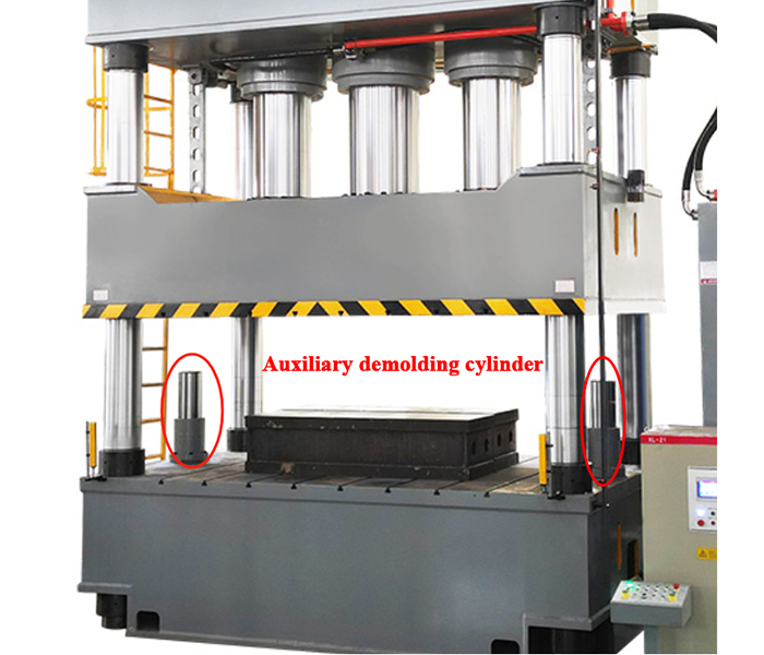 (1)橡膠(特別是軟質(zhì)橡膠、硅橡膠): 這是最典型的需求。橡膠彈性大,硫化后收縮并緊密包裹模具的凸起部分(型芯),形成強(qiáng)大的包緊力和真空吸附力。僅靠主缸回程力通常無法克服,必須依靠輔助開模缸提供強(qiáng)大的初始開模力。